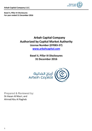 قواعد الكفاية المالية - إفصاح الركيزة الثالثة 2016